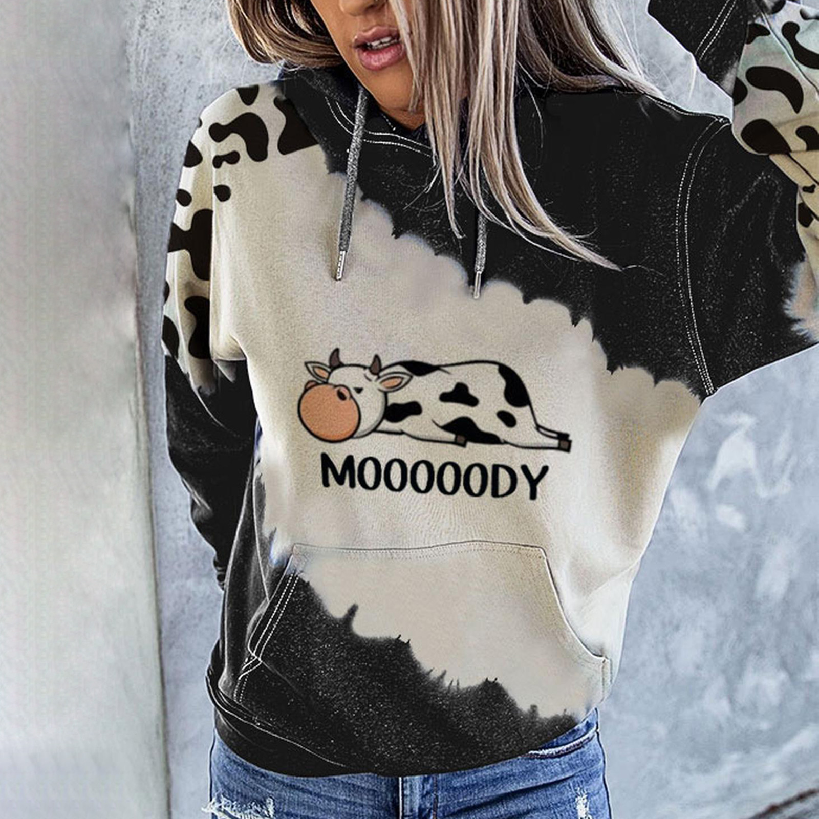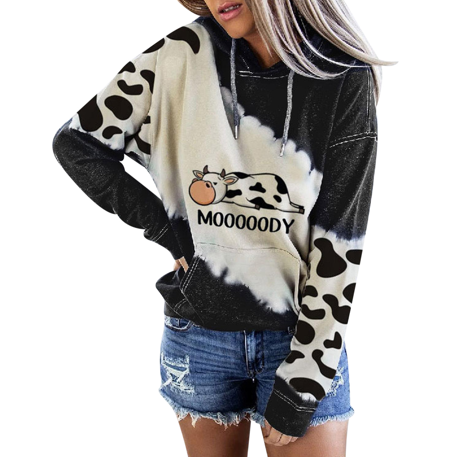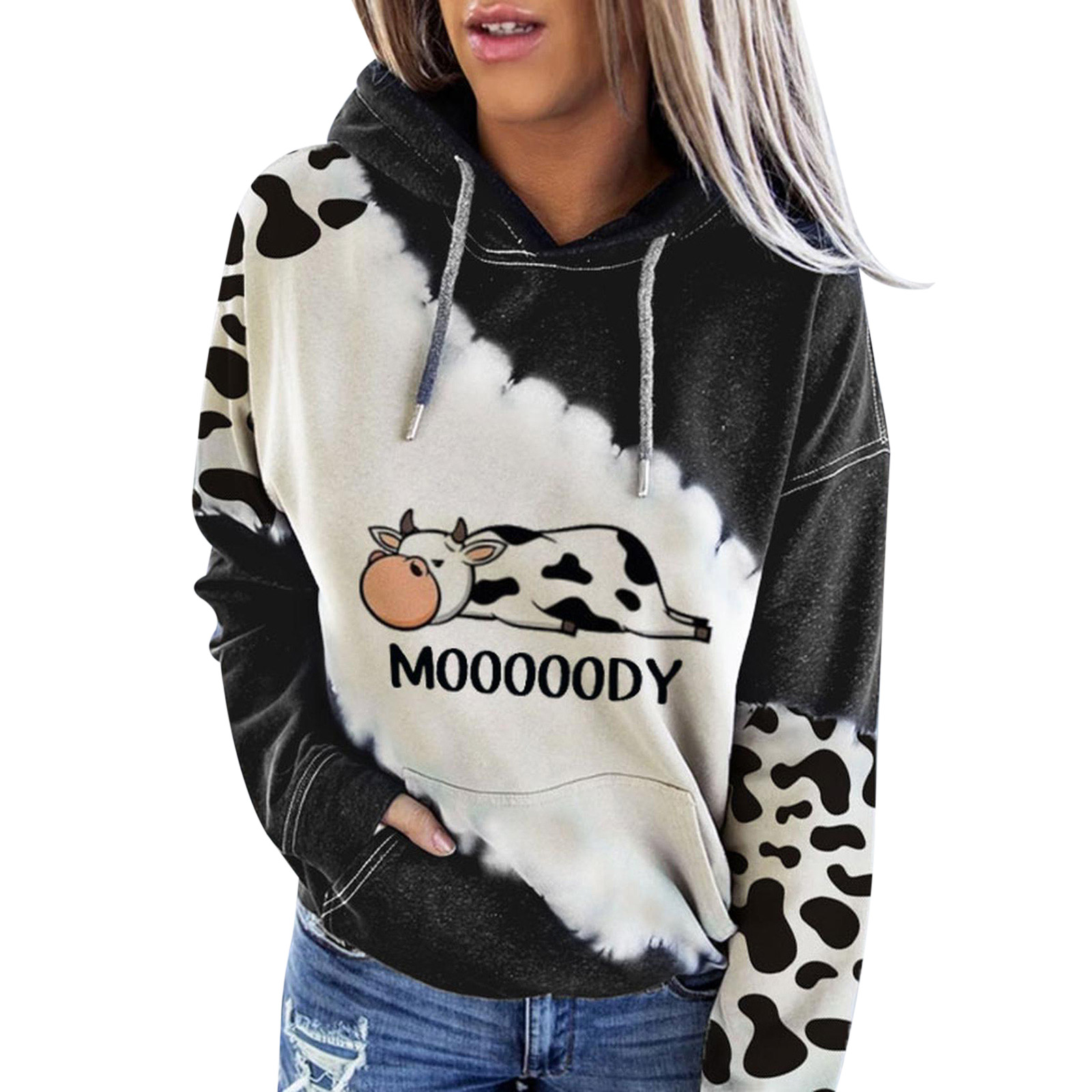 2. Fashionable Design: Fashionable cute cow print hoodies, features drawstring hood, long sleeves, leisure style.