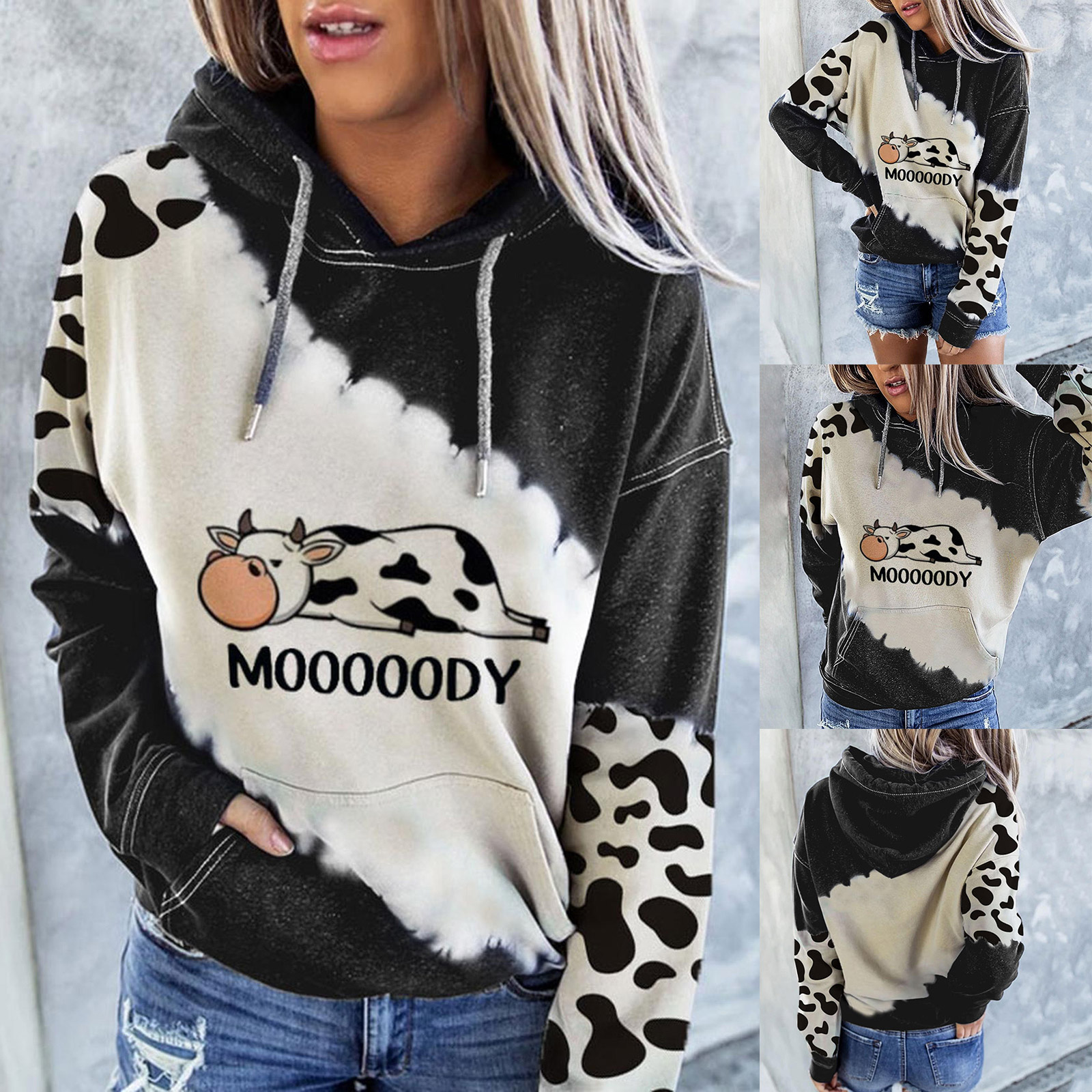 2020 Cute Cow Print Hoodies For Women's Fashion Long Sleeve Casual Hooded Sweatshirt Autumn Winter Pullover Tops Sudadera Mujer