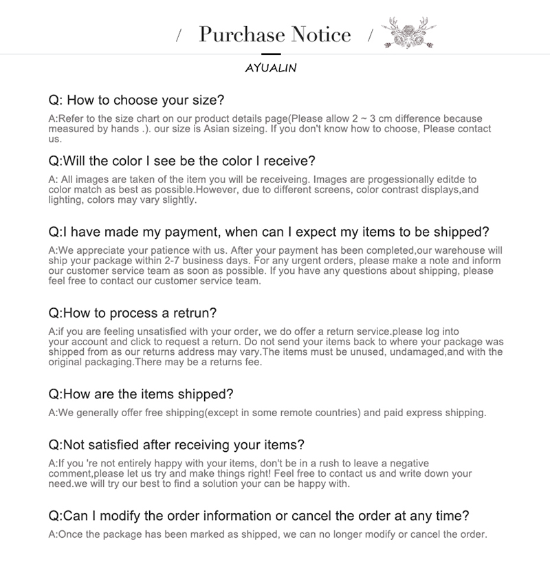 Please allow 2 ~ 3 cm difference because measured by hands .If you don't know how to choose the size, please send your bust size/height/Weight for us ,we can help to recommend .