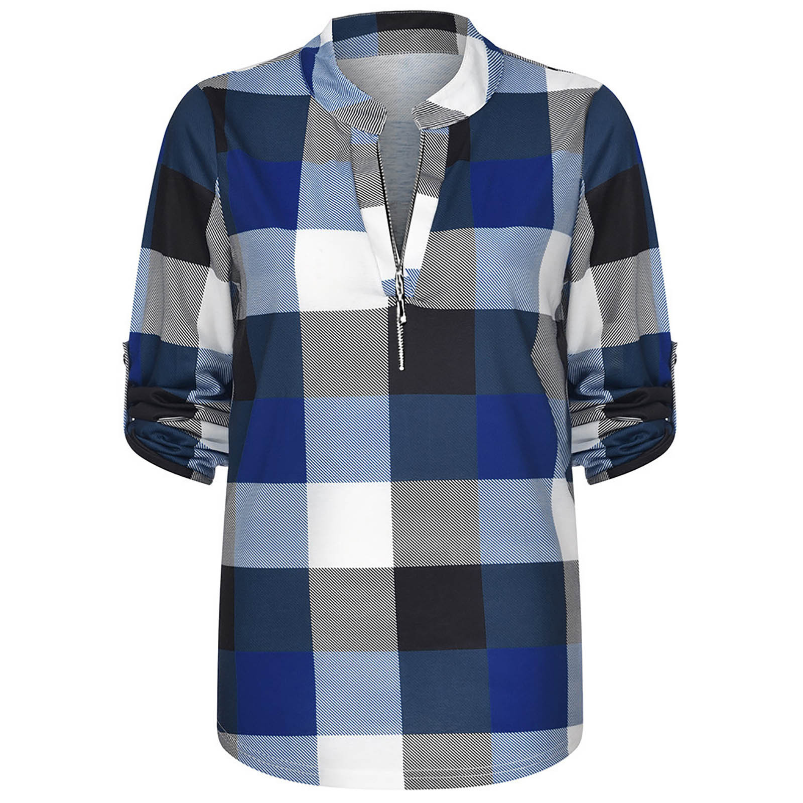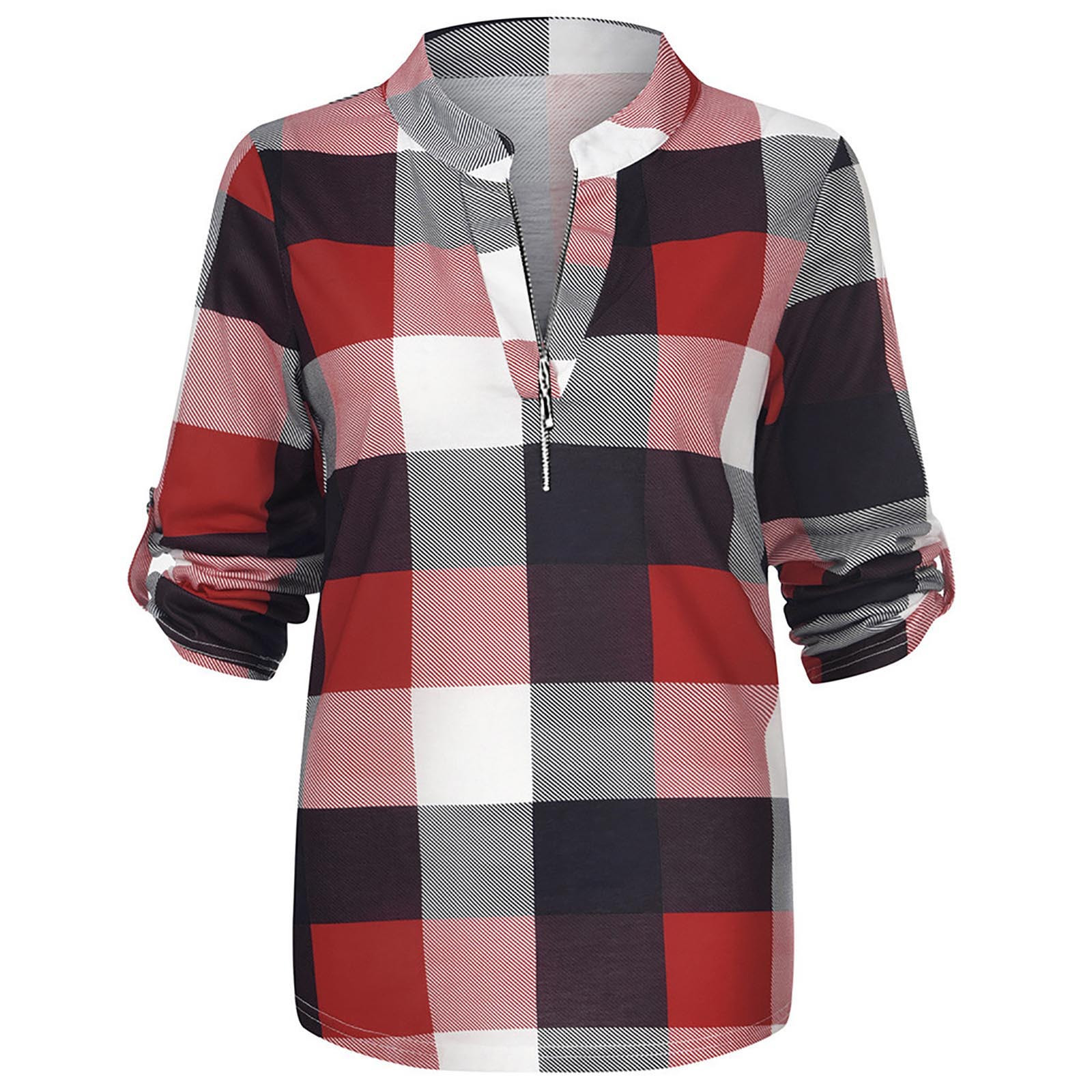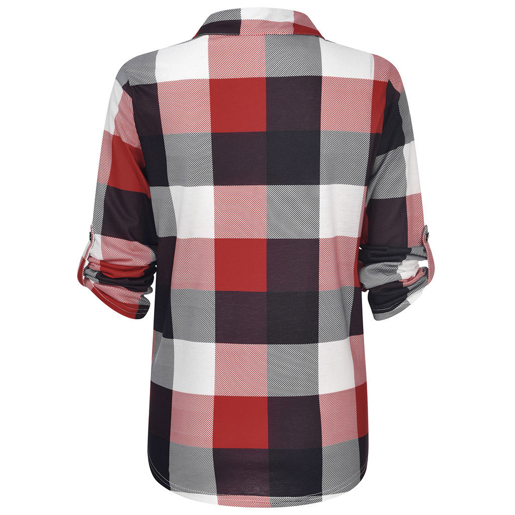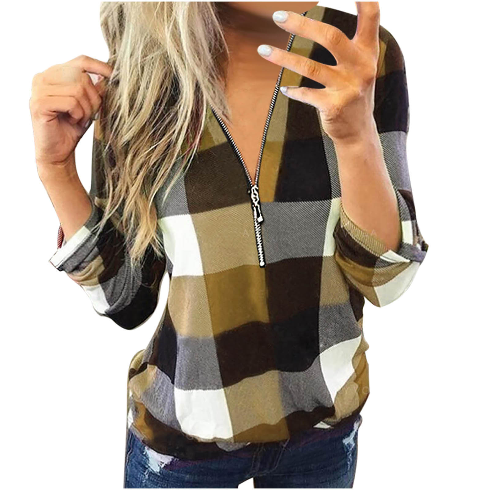 Model Number:S-XXXL Autumn Winter Fashion Womens Casual V-Neck Zipper Plaid Printed